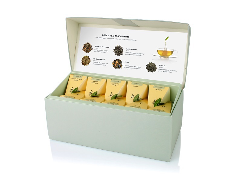 The perfect introduction to the Tea Forté experience. Beautifully packaged and always appreciated, this curated tea collection is a most welcome presentation of the world’s most extraordinary teas. The Green Tea Assortment Presentation Box contains 20 pyramid tea infusers, 4 each of the following green tea blends: Green Mango Peach, Jasmine Green, Lemon Sorbetti, Moroccan Mint and Sencha.