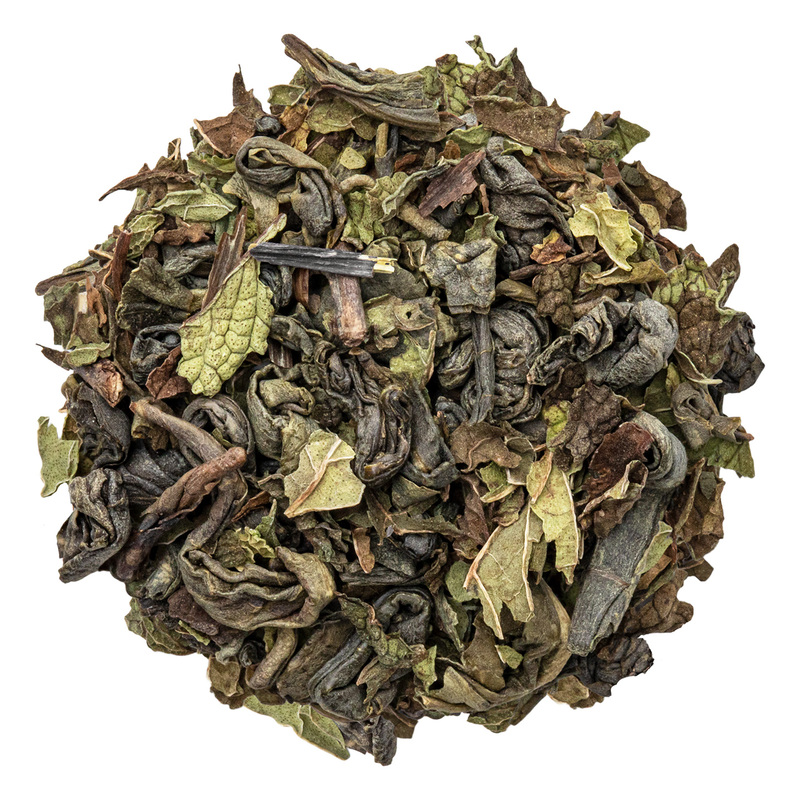 This tea combines fragrant mint leaves with hand-rolled "china gunpowder" green tea for a refreshing and uplifting cup. This tea is delicious either hot or in summer as an iced tea.