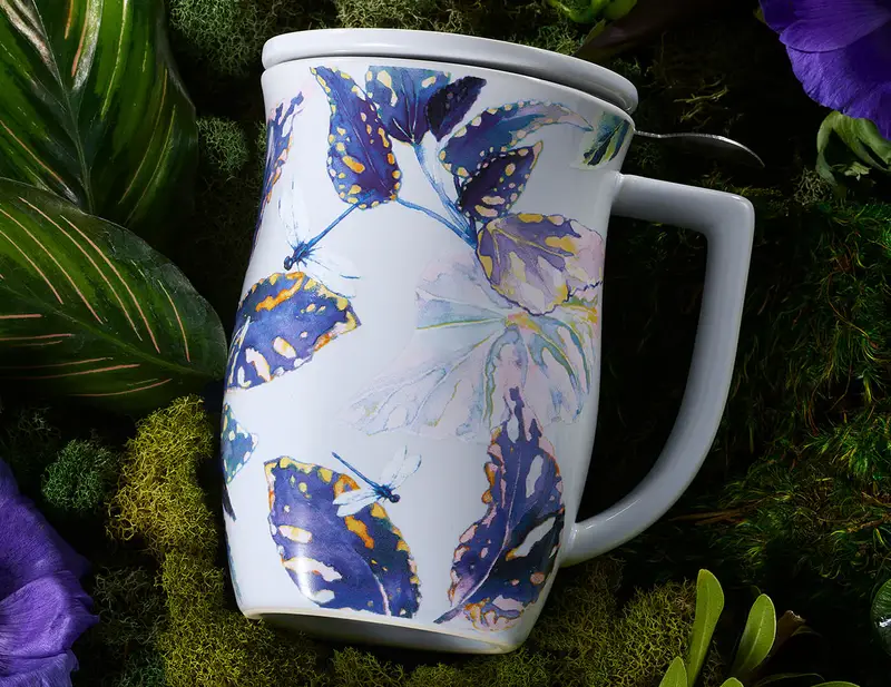 Pour la septième année de notre collaboration avec le New York Botanical Garden, nous présentons l'exquise tasse à infusion Demoiselle Fiore. Cette tasse exclusive est ornée d'une délicate aquarelle réalisée par un artiste du NYBG, qui capture la beauté du feuillage luxuriant du NYBG. L'ensemble de la collection rend hommage au symbolisme des libellules, emblèmes de la transformation et de l'harmonie.