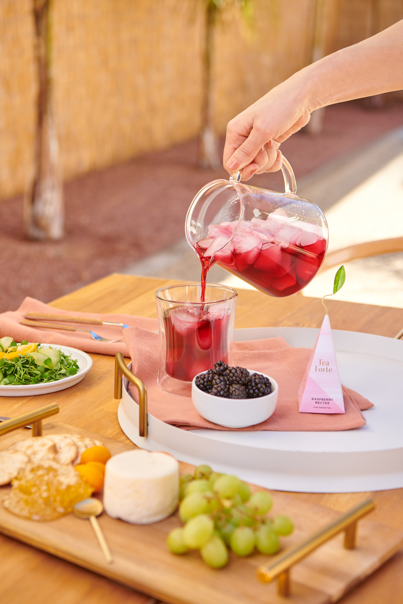 Faites du thé glacé un événement divertissant ! Notre set de pichets Tea Over Ice® comprend deux pichets Steep & Chill™ soufflés à la main et résistants à la chaleur, qui s'empilent pour une présentation spectaculaire sur la table.