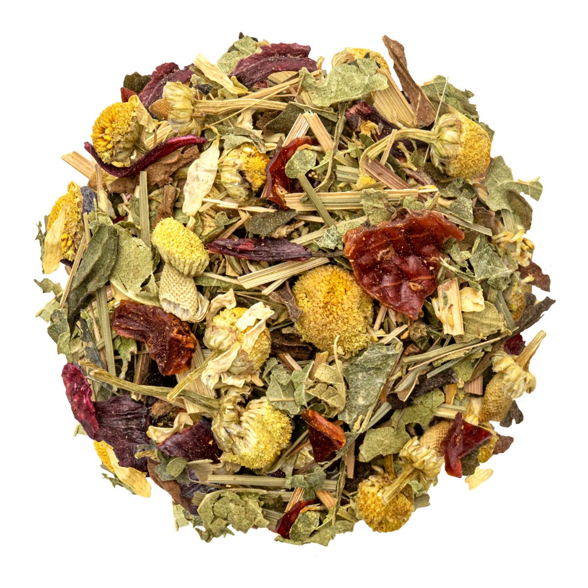 I fiori di ibisco dal gusto rinfrescante e aspro sono un ingrediente perfetto per un tè ricco di antiossidanti e proprietà antibatteriche. Il colore fucsia intenso e il caratteristico sapore acidulo sono caratteristiche molto gradite tra i tè ideali per "combattere i virus" invernali. Ottimo anche come tè freddo per chi desidera gustare qualcosa di rinfrescante per lenire la gola.