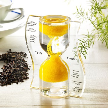 Clessidra colorata per una perfetta tazza di tè. La durata è di circa 5 minuti.